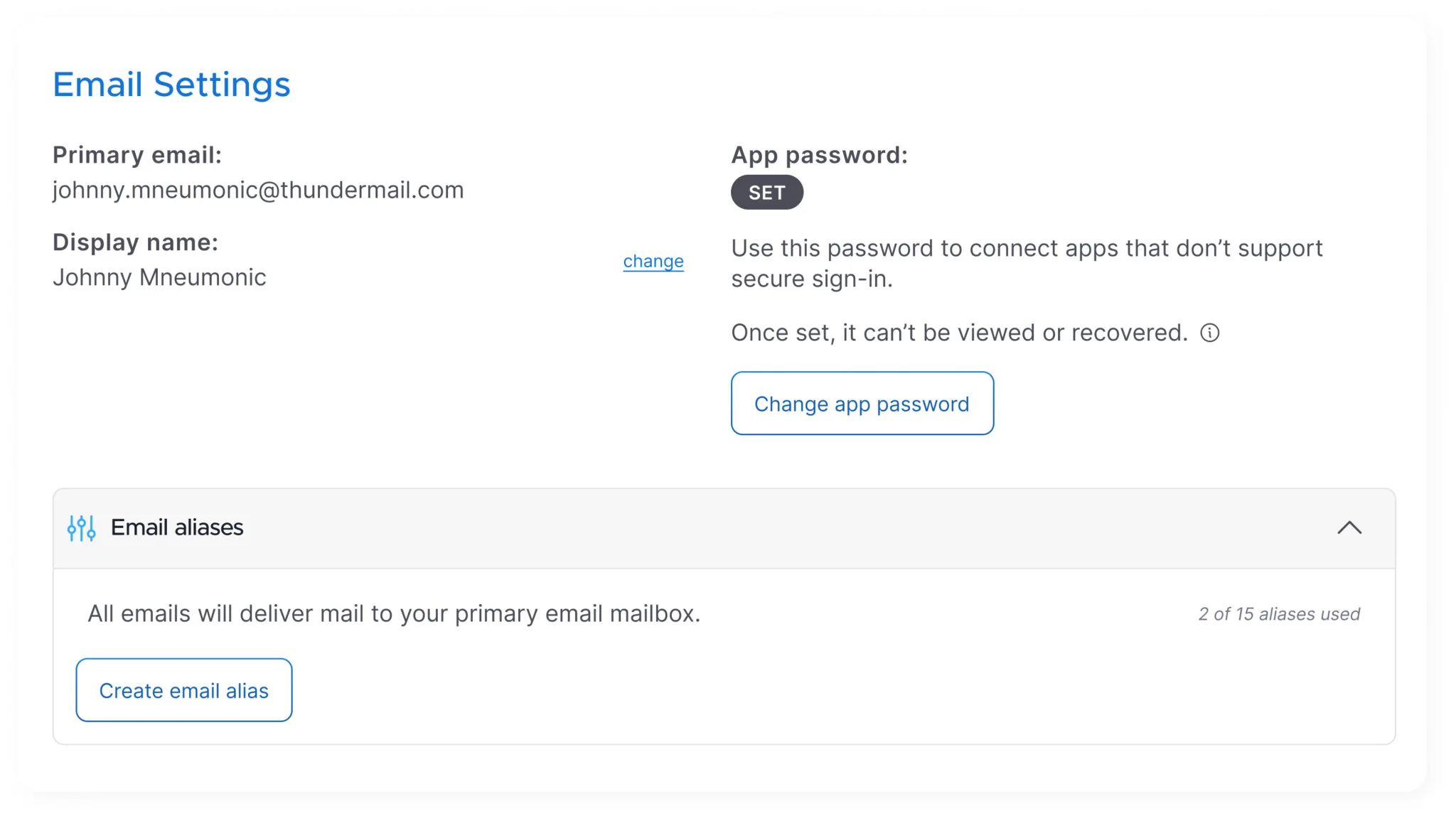 首先是名为 Thundermail 的核心邮件模块,它为用户提供最多 15 个电子邮件地址、3 个自定义域名以及 30GB 的邮件云存储空间。
