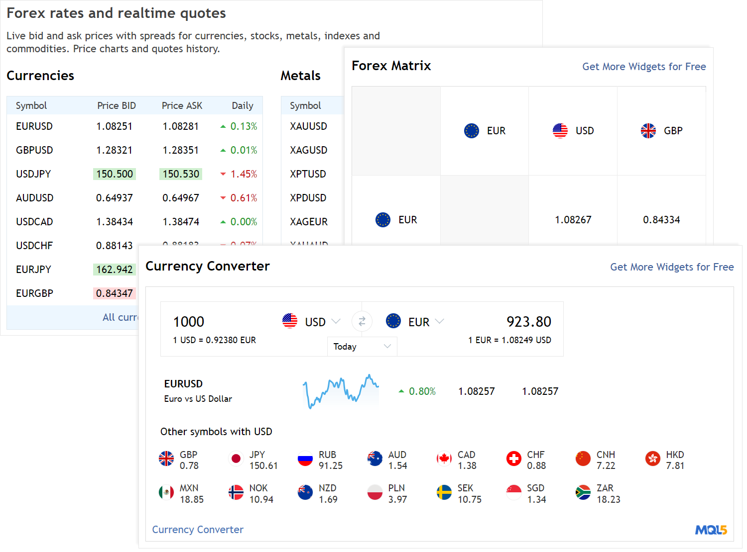 市场报价部分提供所有工具的买入和卖出价格,以及过去 24 小时的价格变化。价格矩阵可让您在一个屏幕上跟踪多个货币对,而转换器可实现快速货币转换。